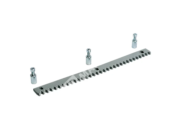Зубчатая рейка предназначена для перемещения сдвижных ворот. Рейки стыкуются между собой и закрепляются на воротах. Длина рейки составляет один метр, что позволяет точно подобрать нужную длину зубчатого полотна для любой ширины проема. Благодаря мощным зубьям рейка выдерживает интенсивную эксплуатацию и длительный срок службы. Кроме того рейка имеет антикоррозионное покрытие, что в течение всего срока службы сохраняет ее прочность и эстетичный внешний вид.