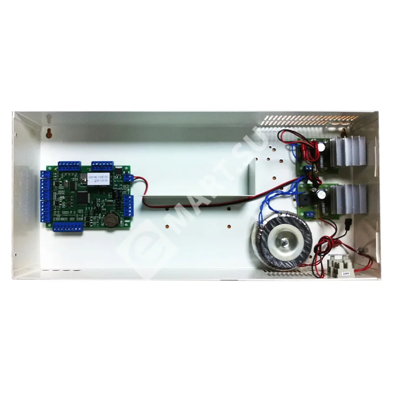 Базовый контроллер Gate-8000-Ethernet в корпусе с двумя ИБП (для питания замка и контроллера) и местами под аккумуляторы 7Ач.