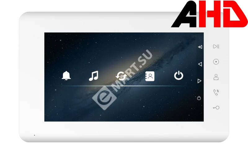 Адаптированный для цифровых подъездных систем монитор цветного видеодомофона TFT LCD 7" 800x480, AHD/CVI/TVI/CVBS, Hands-Free, 1 подъездная вызывная панель, 1 индивидуальная вызывная панель, 2 камеры. Питание 220В. VZ - координатные системы типа Cyfral, Eltis, Metakom, Vizit и их аналогами