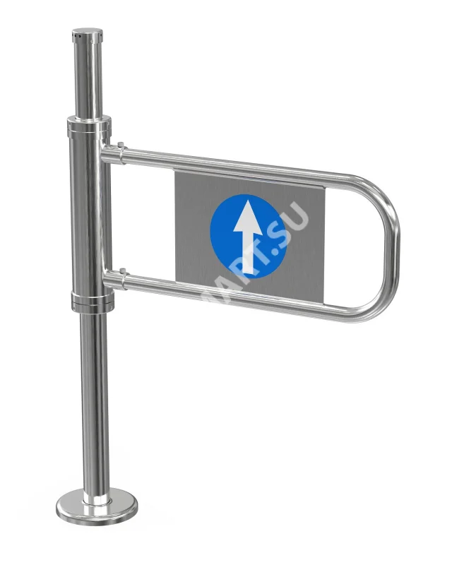 Калитка является односторонней (левой): дуга проворачивается только в одну сторону — на 90° против часовой стрелки. После прохода дуга автоматически возвращается в исходное положение под действием возвратной пружины и гидравлического доводчика, надежно перекрывая проход. Это идеальное решение для организации направленного движения в местах с высокими требованиями к эстетике и долговечности.