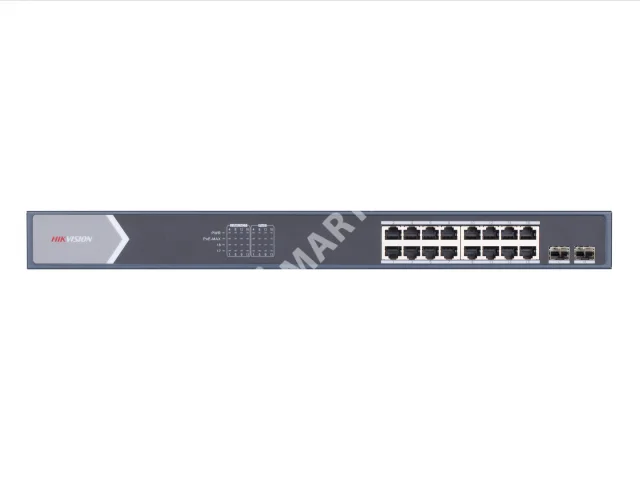 Hikvision DS-3E0520HP-E - Неуправляемый промышленный РоЕ-коммутатор оснащен гигабитными двенадцатью RJ-45 с поддержкой РоЕ, четырьмя RJ-45 с поддержкой Hi-PoE, двумя Uplink-портами RJ-45, двумя SFP-слотами для работы в волоконно-оптической сети.