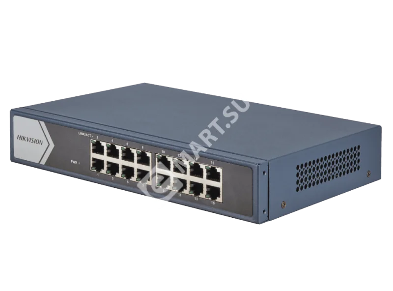 Hikvision DS-3E0516-E (B) - Неуправляемый коммутатор оснащен 14 GE-портами RJ-45, двумя Uplink-портами для подключения к сети и стекирования. Поддерживает полнодуплексный режим передачи данных с промежуточным хранением. Архитектура свитча неблокирующая: отсутствует блокировка трафика при обмене между коммутаторами, соединенными в стек.