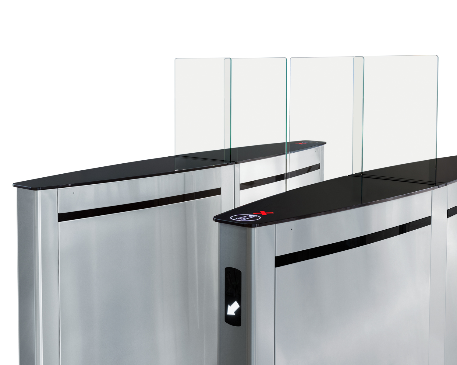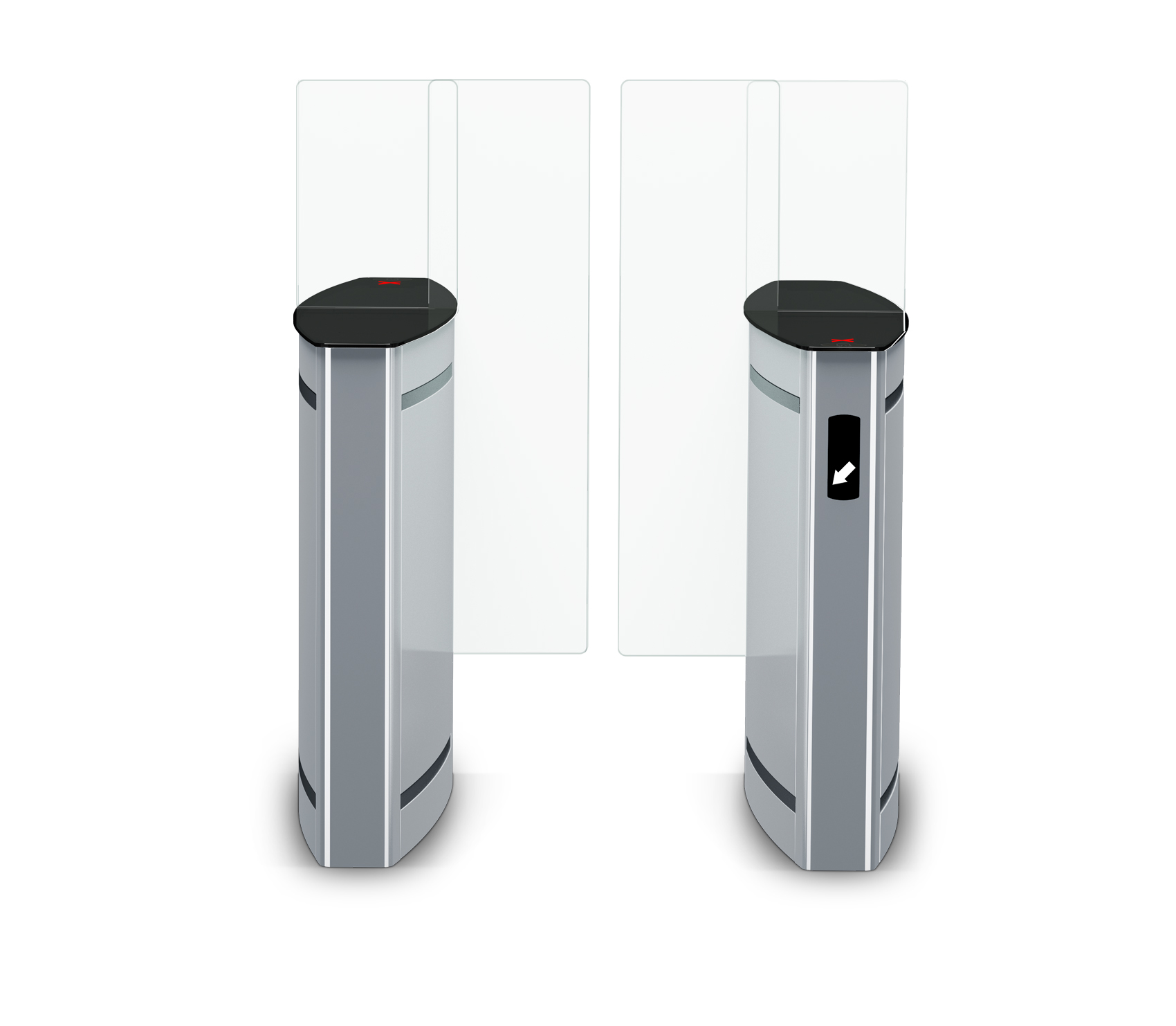 PERCo ST-02.900 - Турникет «скоростной проход» состоит из секции Master (ST-02.900/M) с платой управления и секции Slave (ST-02.900/S) — обе с раздвижными створками, перемещаемыми электроприводом, и неподвижными стеклами заполнения пространства над тумбами.