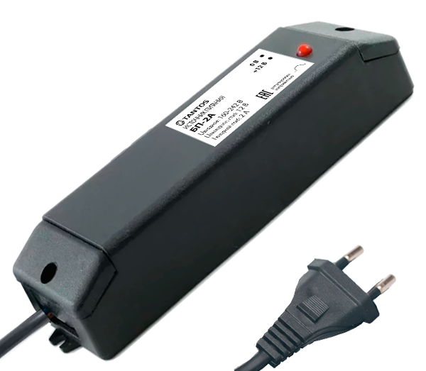Блок питания 12B 2А (макс 2.5А), пластиковый корпус, регулировка выходного напряжения, защита сети 220В от помех. Крепления кабеля - зажимные колодки. Шнур питания 220 В входит в комплект поставки устройства.