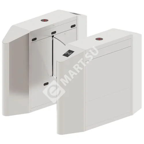 Модель обладает высокой пропускной способностью — до 30 человек в минуту при использовании RFID-идентификации и до 35 человек в минуту при использовании отпечатка пальца (в зависимости от конфигурации считывателей) — что делает её отличным решением для офисов, бизнес-центров, торговых помещений, образовательных учреждений и логистических зон. Ширина прохода 600 мм обеспечивает комфортное перемещение большинства пользователей. При отключении питания или в аварийной ситуации створки автоматически открываются, обеспечивая безопасный эвакуационный проход.