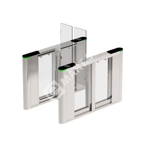 Конструкция корпуса выполнена из прочной нержавеющей стали SUS304 и акрила, обеспечивая высокую устойчивость к механическим воздействиям и долговечность. Распашные створки обеспечивают безопасное, удобное и чёткое разделение потока людей. Турникет поддерживает двунаправленную работу и автоматический аварийный режим, который раскрывает створки при отключении питания или в экстренной ситуации.
