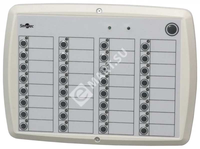 Сетевая панель индикации и управления на 32 раздела, TCP/IP, Wiegand 26 и 34. ST-NC032 предназначена отображения статуса и управления различными элементами интегрированной системы безопасности, например, разделами охранной сигнализации. Она может использоваться совместно с контролерами ST-NC221 и ST-NC441. Устройство имеет 32 свободно программируемых элемента (световой индикатор/кнопка) и порт подключения считывателя для авторизации сотрудника при выполнении каких-либо операций.