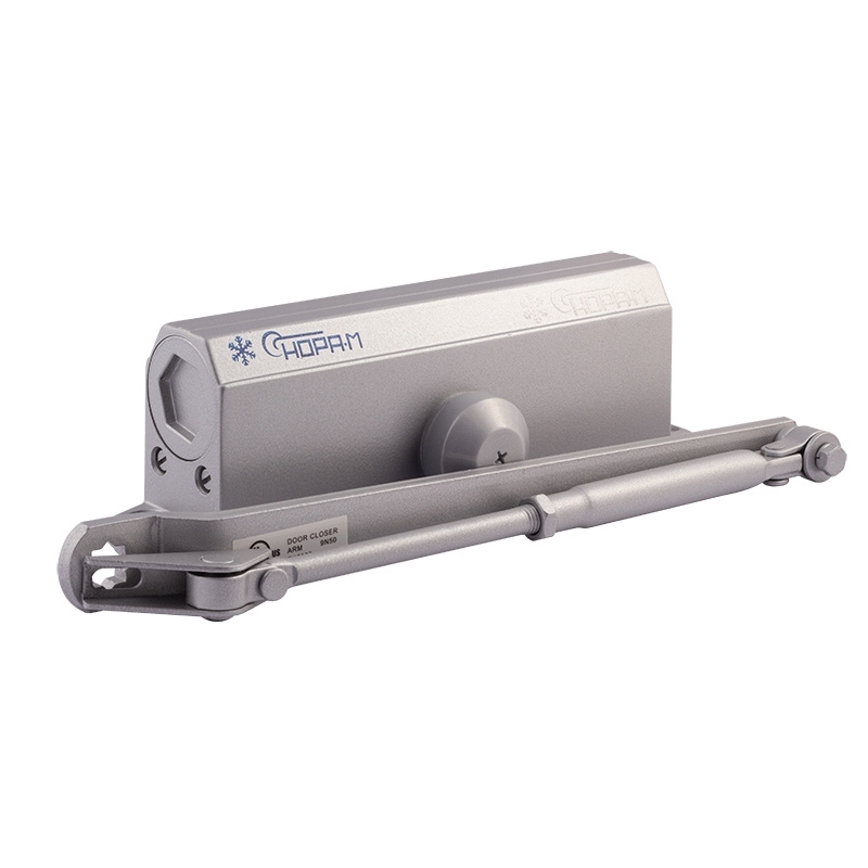 Универсальный дверной доводчик уличный морозостойкий, предназначен  для дверей левого и правого открывания. Устанавливается на тяжёлые входные двери весом от 80 до 120 кг. Данная модель разработана с учетом особенностей эксплуатации в российских условиях. Диапазон рабочих температур от –45° до +60°C. Прочный силуминовый корпус имеет высокие антикоррозийные свойства. Эти характеристики позволяют использовать модель 4S как доводчик на металлическую дверь. Скорость закрывания двери регулируется при установке в двух диапазонах при помощи винтов на корпусе доводчика.