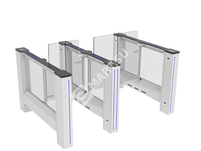 - Скорость и эффективность: Время открывания створки всего 2 секунды, что позволяет обеспечить до 30 проходов в минуту и избежать очередей на проходной.