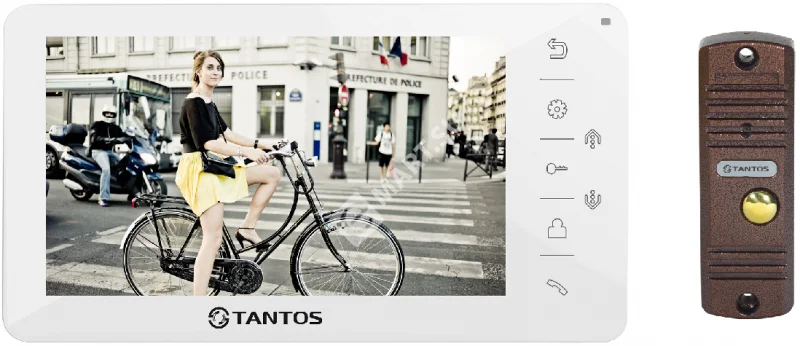 Tantos Amelie kit - Комплект бюджетного домофона. В комплекте: Монитор видеодомофона цветной с 7" дисплеем, Hands-free, управление сенсорными кнопками, формат CVBS (PAL/NTSC). Питание: 100-240 В, 50-60 Гц (блок питания встроенный). Вызывная панель антивандальная, с матрицей видеокамеры высокого разрешения, формат CVBS (PAL). Стандартная четырех проводная схема подключения.