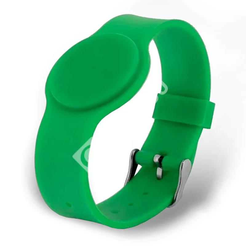Идентификатор формата EM-Marin в виде браслета с застёжкой. Предназначен для идентификации пользователя в системе контроля доступа по коду, содержащемуся в конкретном браслете. Цвет - зелёный.
