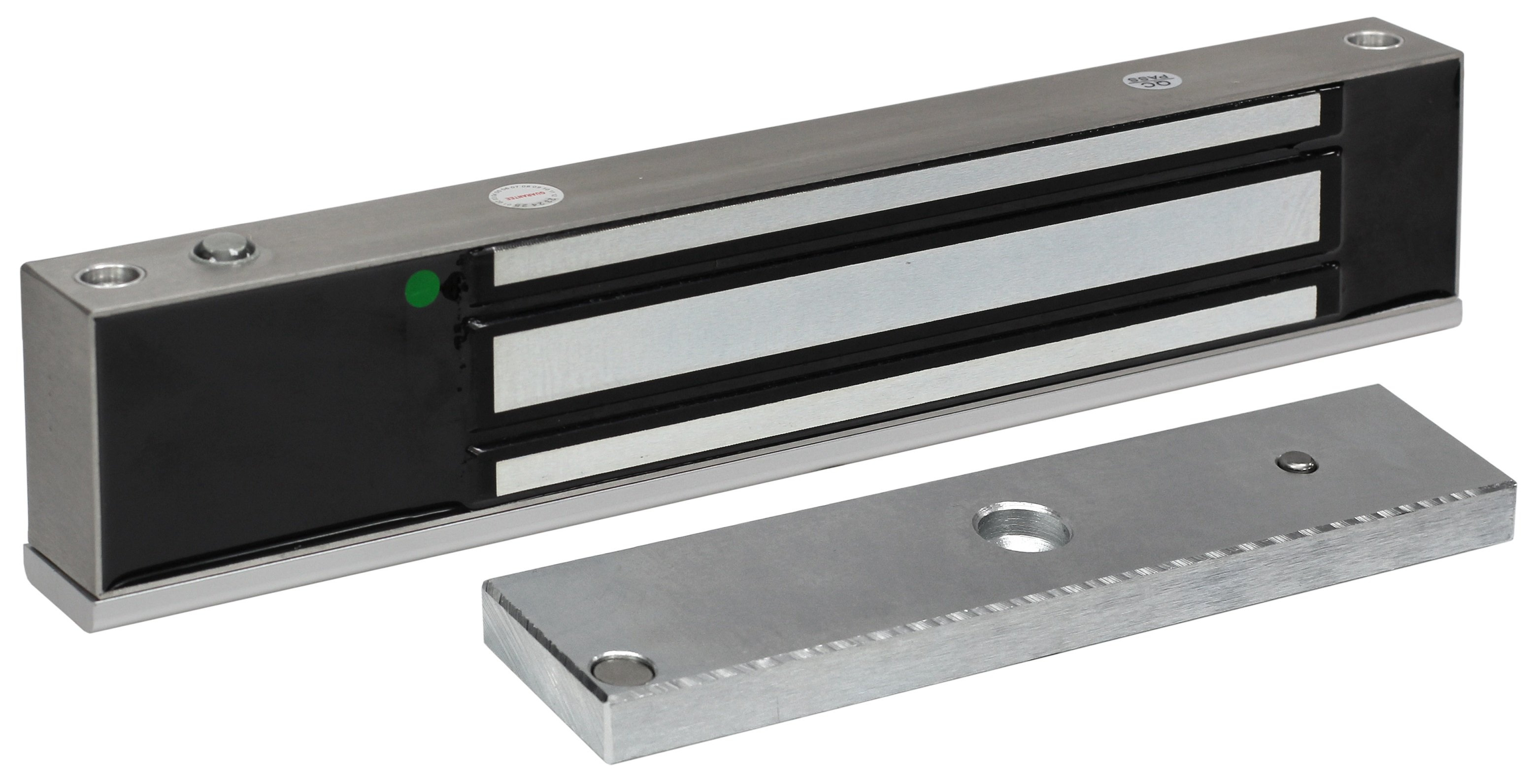 Электромагнитный замок, уличное исполнение, СИД, датчик положения двери, IP68, нержавеющая сталь, усилие 320-340 кг.