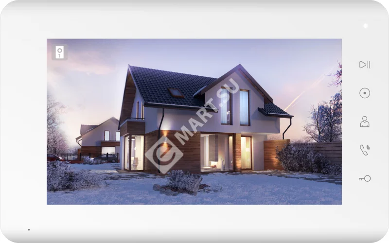 Монитор цветного видеодомофона TFT LCD 7" 800x480, CVBS (PAL/NTSC), Hands-Free, 5 вызывных панелей, 2 камеры, до 6-ти шт. в параллель. Питание 220В. Габариты 205х128х18 мм.