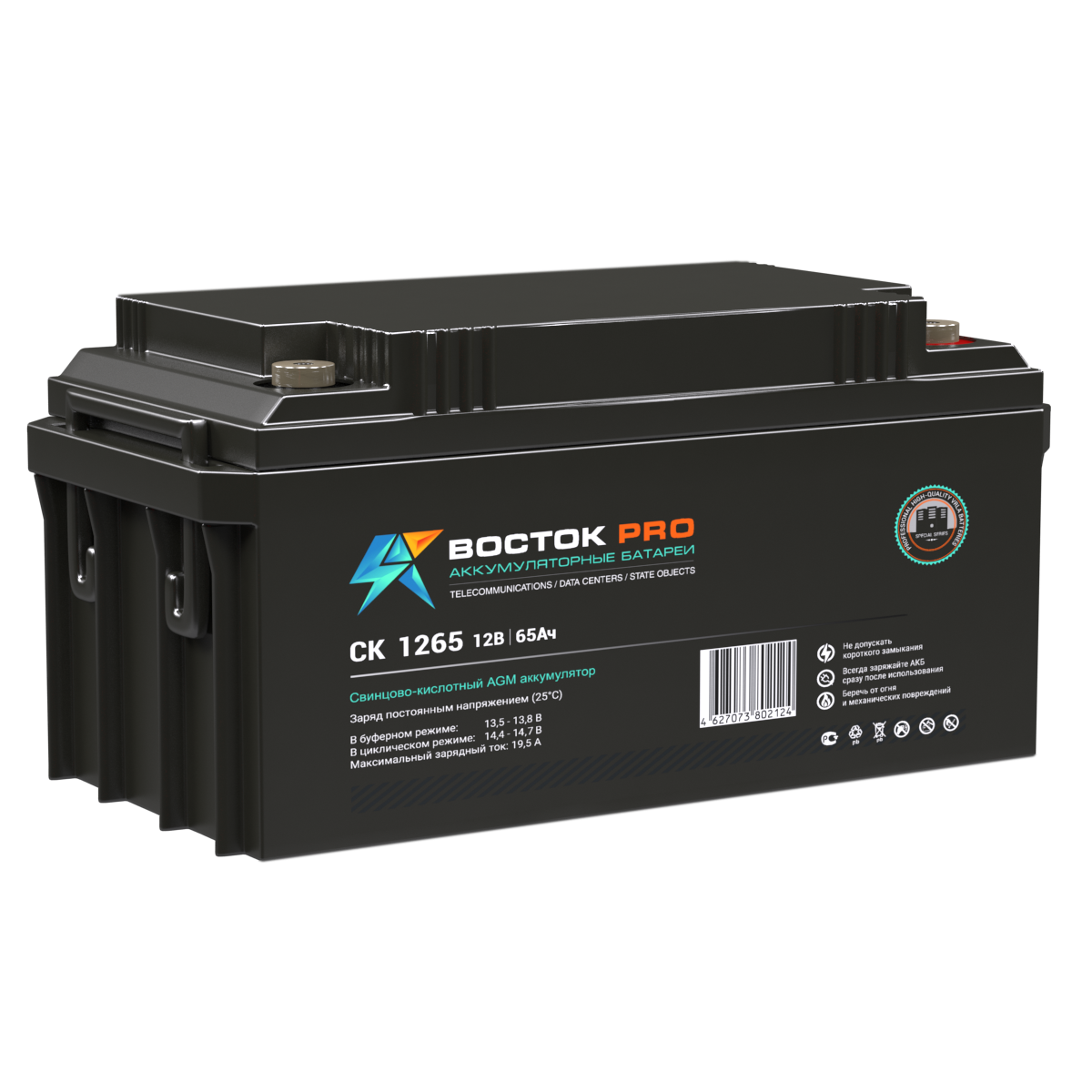 Свинцово-кислотные аккумуляторы ВОСТОК серии CK предназначены для использования в системах бесперебойного питания, резервного энергоснабжения, автономных энергосистемах. Изготовлены по AGM технологии (электролит, абсорбированный в стекловолоконном сепараторе), являются герметизированными и необслуживаемыми, со сроком службы в буферном режиме 10 лет (от 5 до 26 Ач – 5 лет). Обладают высокими разрядными и эксплуатационными характеристиками благодаря использованию в составе электролита и намазной пасты специальных добавок, препятствующих коррозии и замедляющих процесс старения.