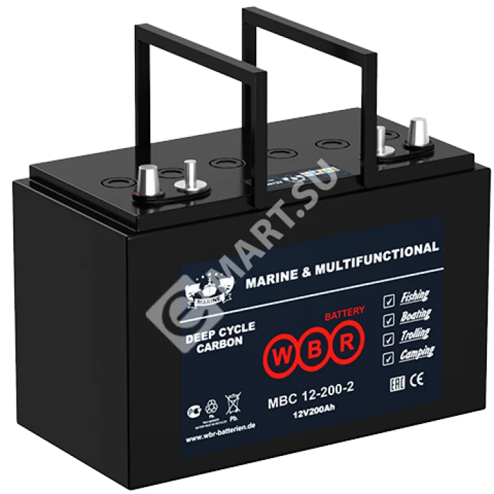 Аккумулятор WBR MBC12-200-2 - герметизированные, выполненные по технологии AGM, лодочные свинцово-кислотные карбоновые. Батареи обладают высоким качеством и надежностью, высокой цикличностью использования, устойчивы к глубоким разрядам и применяются для питания на яхтах, катерах и моторных лодках. Возможны к применению как источники питания для электронасосов, эхолотов, осветительных приборов и другого вспомогательного оборудования. Двойные полюсы позволяют подключать двигатель и другое оборудование к аккумулятору одновременно.