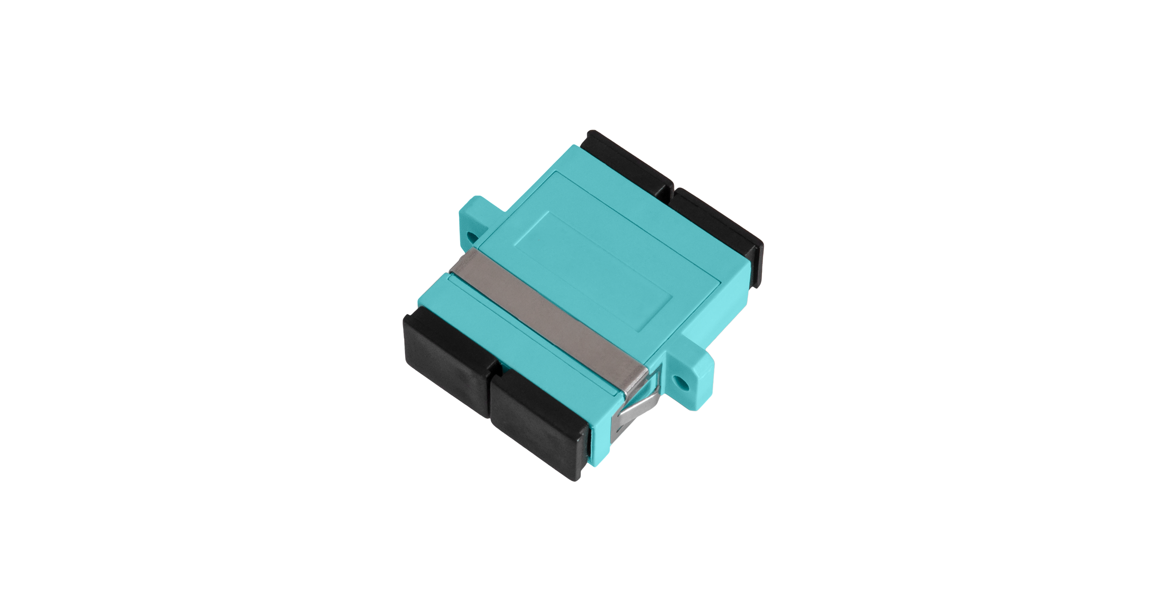 Адаптер NIKOMAX волоконно-оптический, соединительный, многомодовый, стандарта OM3, SC/UPC-SC/UPC, двойной, пластиковый, без шторки, с фланцами, аква, уп-ка 2шт.