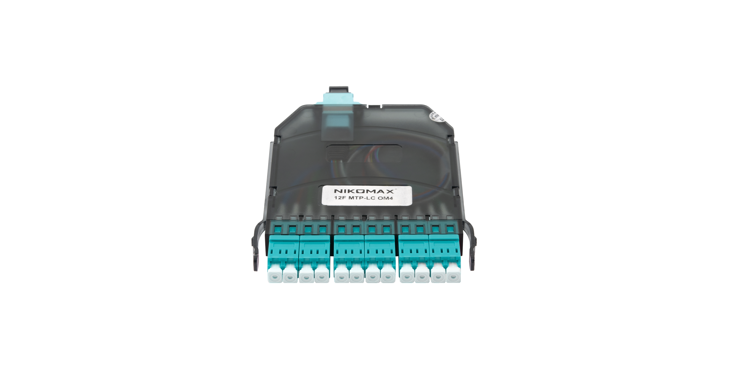 Кассета NIKOMAX волоконно-оптическая, для MTP/MPO кросса, 1 слот, многомодовая 50/125 мкм, стандарта OM3, 1x MTP/male - 12x LC/UPC, полярность А, премиум, прозрачная