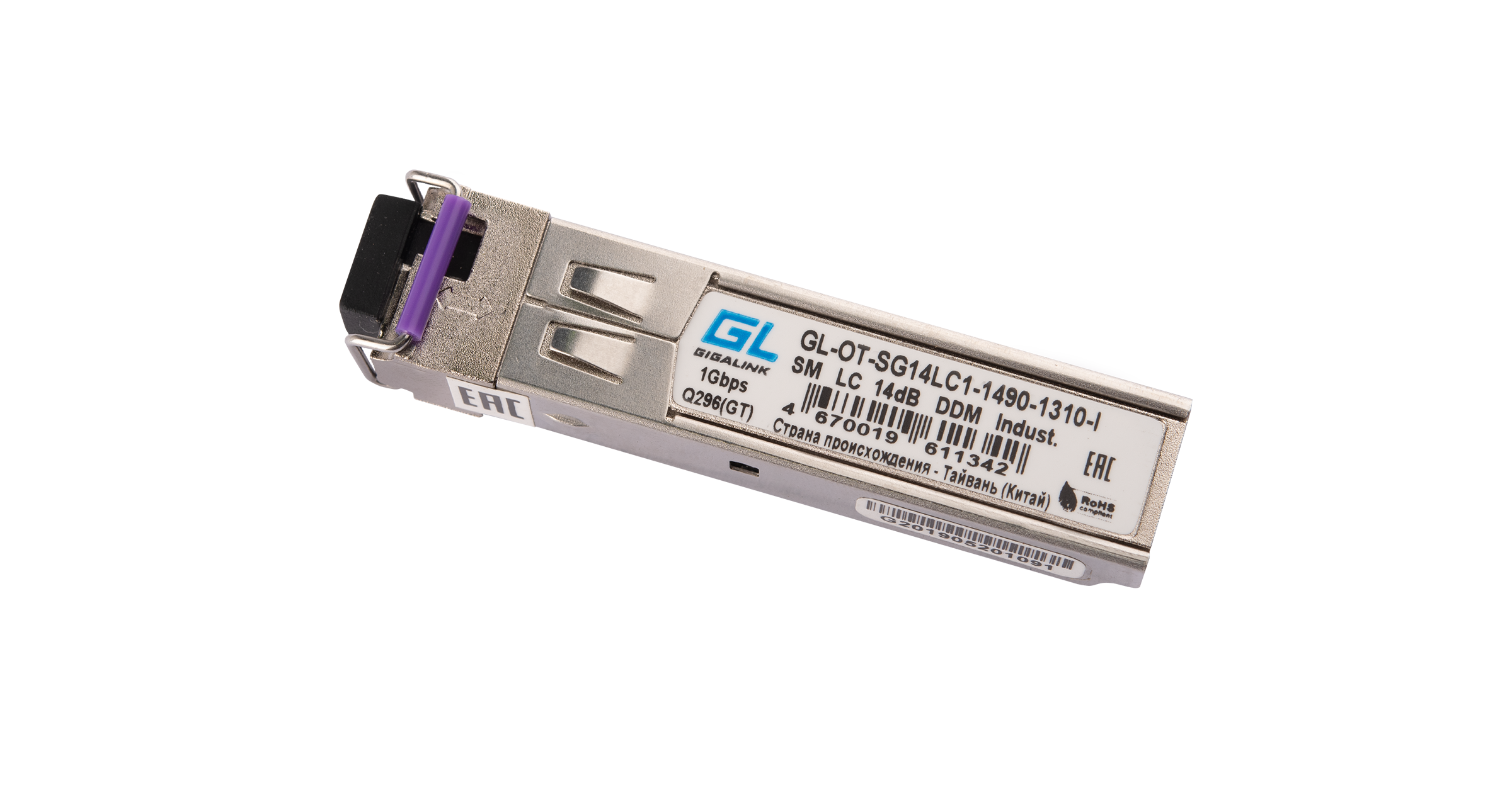 Модуль NIKOMAX SFP, 1.25 Гбит/с, WDM, 1 ОВ, SM, 1xLC, Tx:1490/Rx:1310 нм, DDM, 14 дБ (до 20 км), -40 +85 °С