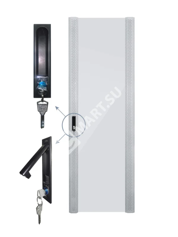 для шкафов серии Expert шириной 600мм, высотой 22U Цвет: серый Закаленное стекло, по бокам расположены металлические плашки с перфорацией для дополнительной вентиляции (перфорация 17%)