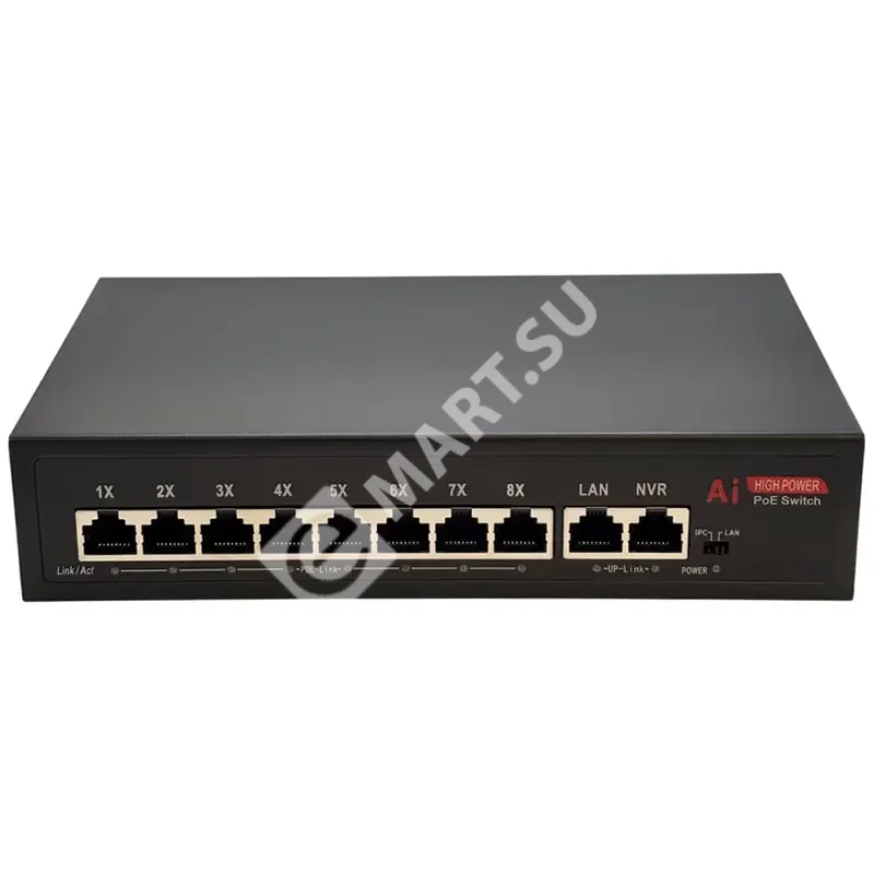 - 8 портов PoE с высокой мощностью: Каждый из 8 портов поддерживает стандарты 802.3af/at и обеспечивает до 30 Вт, что позволяет подключать даже энергоемкие поворотные камеры и видеодомофоны. Общий бюджет PoE — 135 Вт.