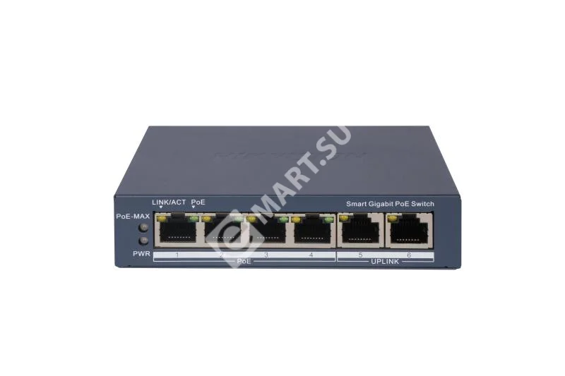 Hikvision DS-3E1506P-EI — это компактный управляемый гигабитный PoE-коммутатор, предназначенный для построения современных систем видеонаблюдения и локальных сетей на небольших объектах. Модель оснащена 4 гигабитными портами 10/100/1000 Мбит/с с поддержкой PoE (IEEE 802.3af/at) и 2 гигабитными uplink-портами RJ45 для подключения к сети. Уникальные особенности — поддержка расширенных функций управления: PoE Power, PoE Watchdog для автоматического перезапуска зависших камер, интеграция с Hik-Partner Pro, а также поддержка протоколов STP/RSTP и VLAN. Коммутатор имеет металлический корпус, встроенную грозозащиту 6 кВ и питание от внешнего адаптера 54V.